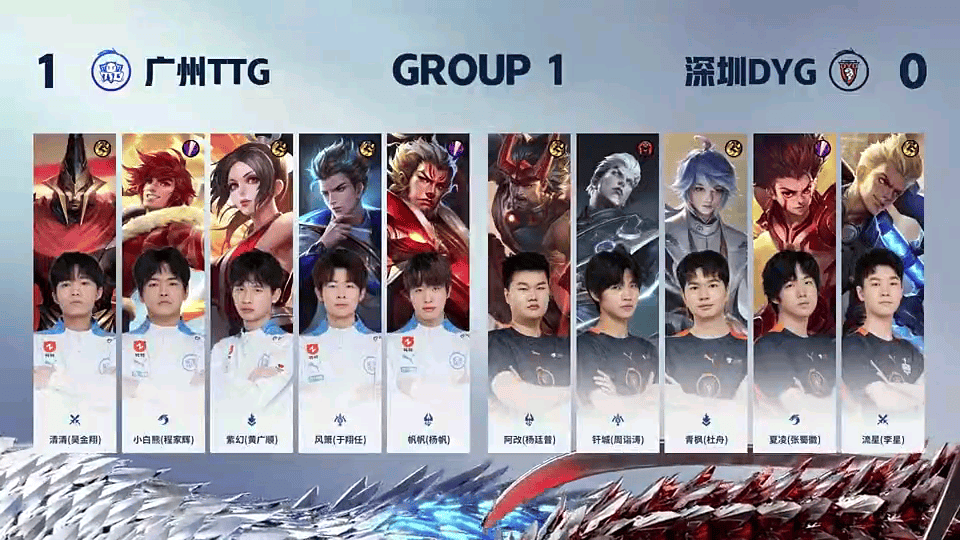 广州TTG 1-1 深圳DYG,本场选手表现你打几分?