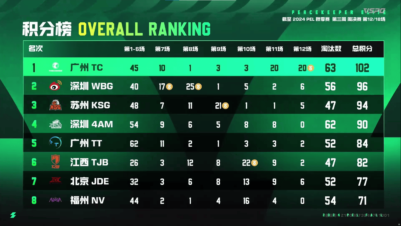 PEL第三周周决Day2:TC积分102第一,WBG连吃两鸡追至第二