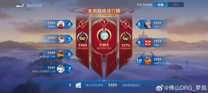 巅峰大佬返场,梦岚发文:好久好久没上过巅峰第一了