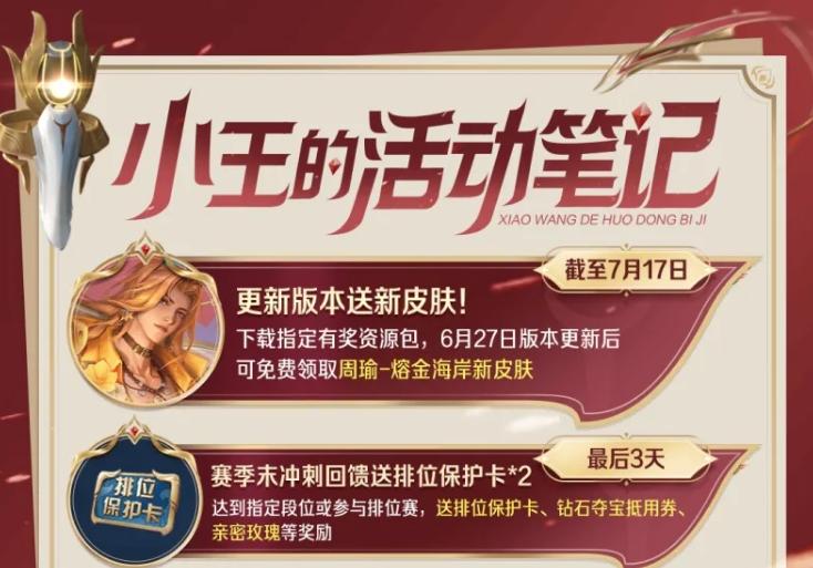 小王的活动笔记|新一期活动笔记来了,更新版本送新皮肤!