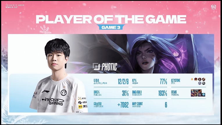 赛事高光:恭喜Wei获得徳杯FMVP,iG徳杯场均3.6条小龙