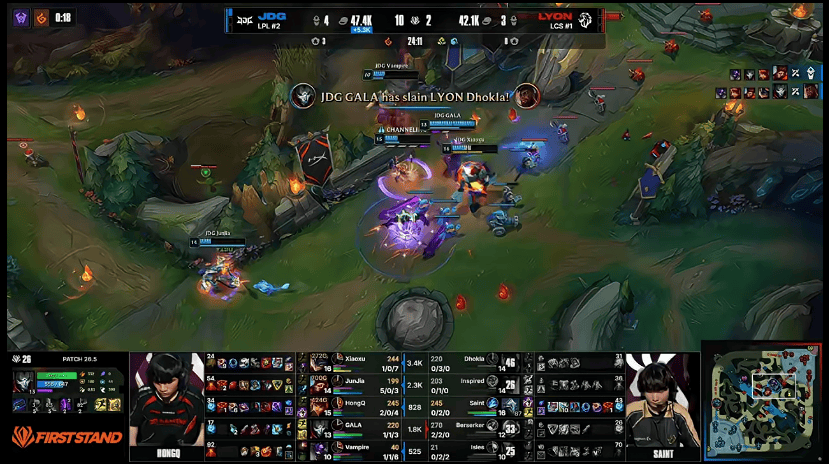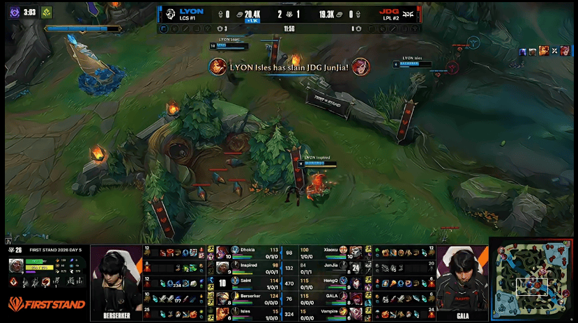 JDG对阵LYON第四局BP:Junjia波比野区交锋猪妹