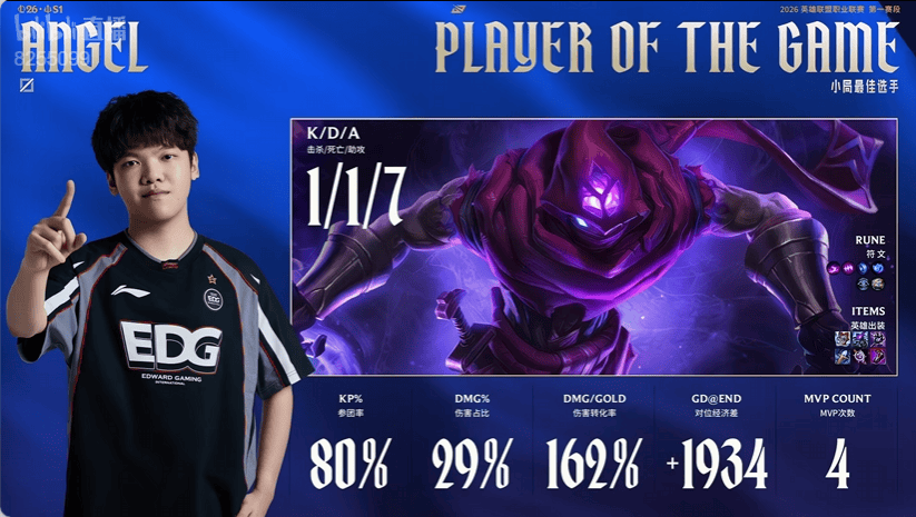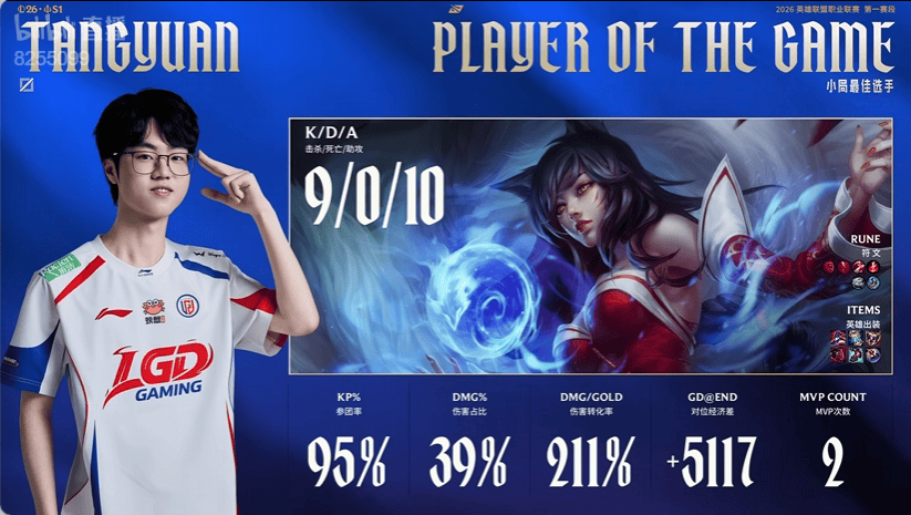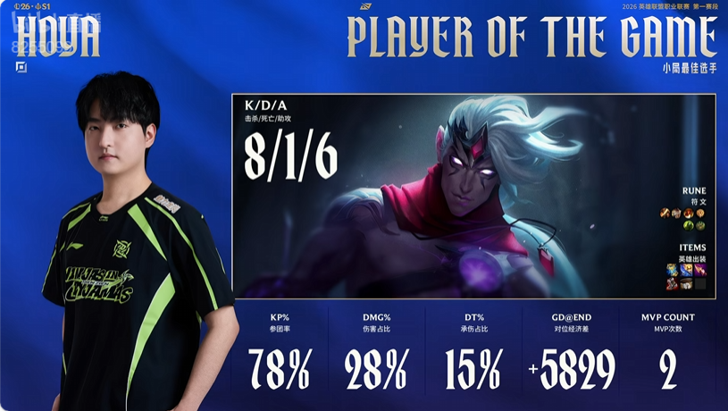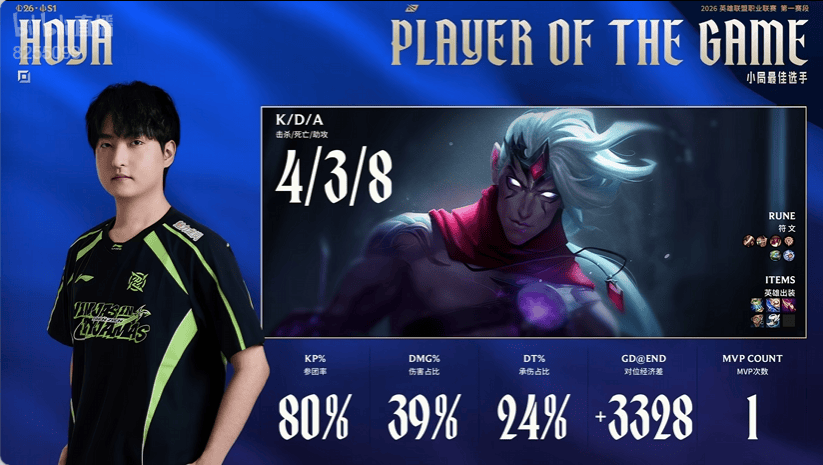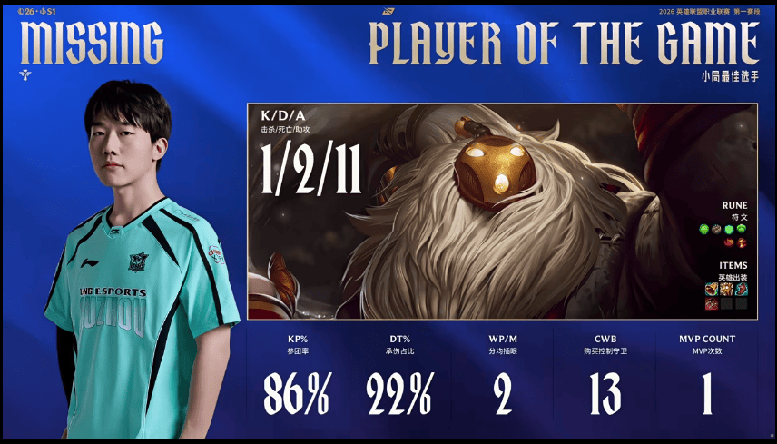 Missing使用巴德打出1/2/11战绩,斩获LNG对阵UP第一局MVP