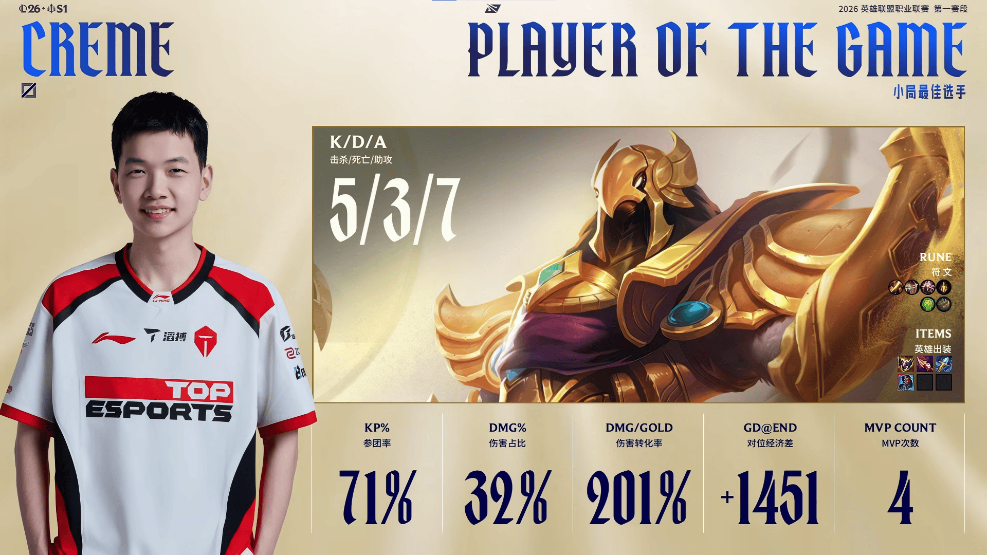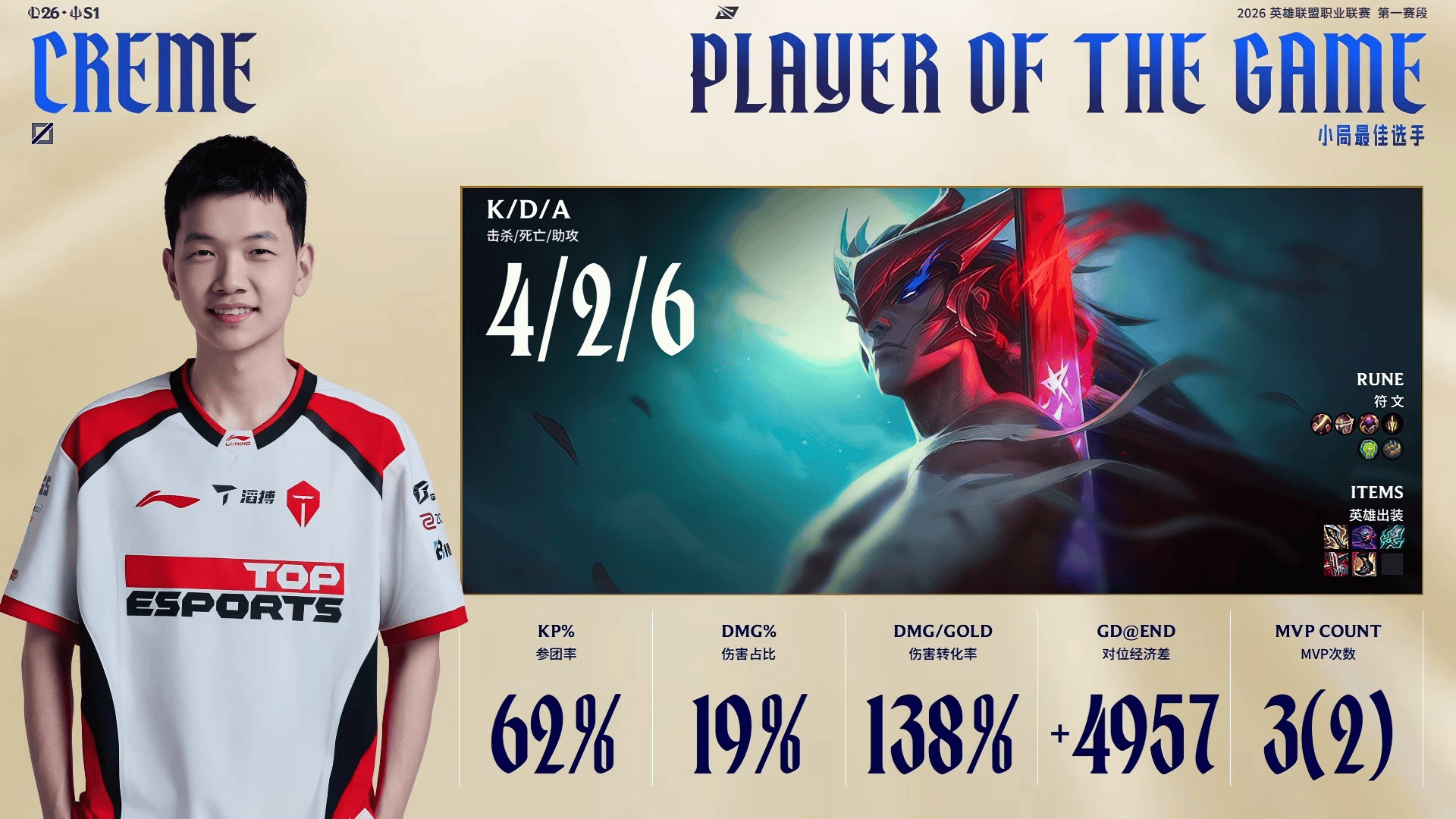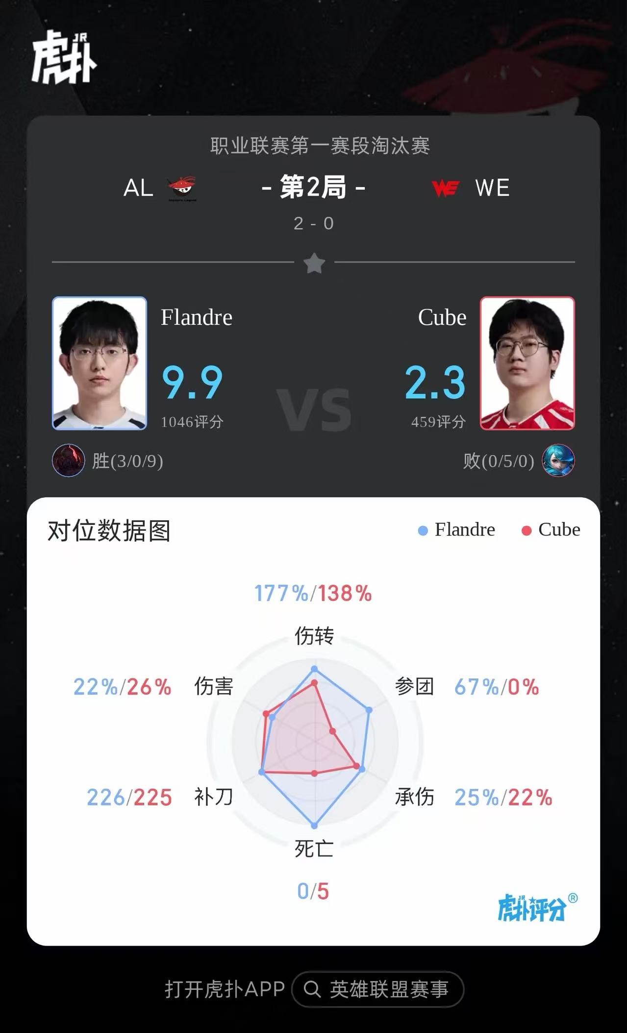 Flandre塞恩打出3/0/9战绩,斩获AL对阵WE第二局MVP