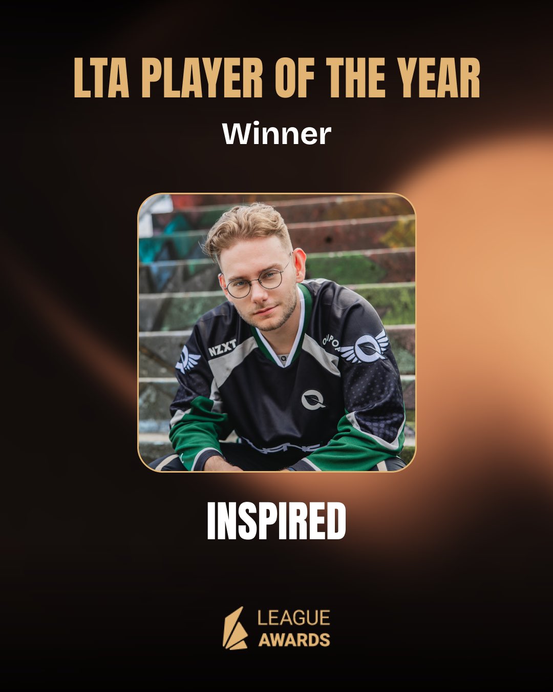 打野选手Inspired荣获国外联盟颁奖典礼LTA年度最佳选手奖