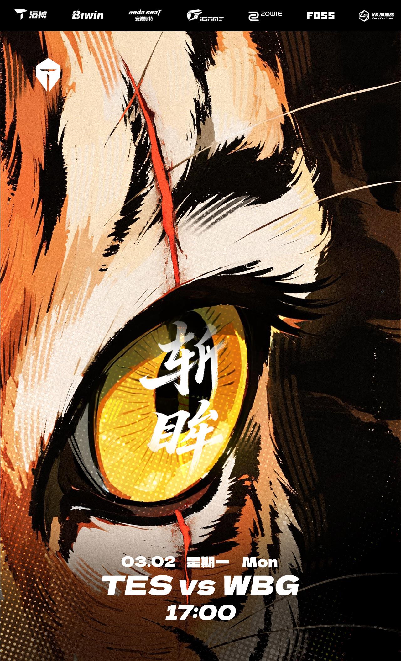 WBG对阵TES赛前海报: 激流勇进;斩眸