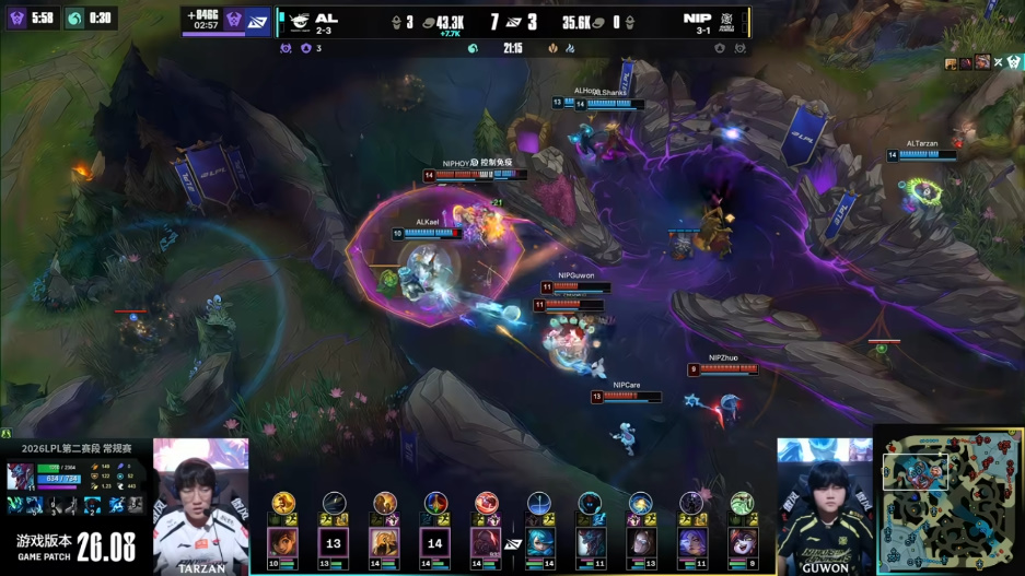 AL拿下大龙,Tarzan奇亚娜草丛蹲伏秒掉下路两人打出2换3