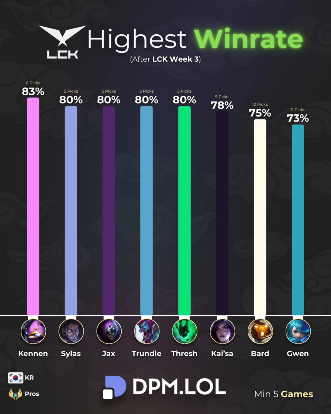 2026LCK杯前三周英雄胜率:凯南位居第一