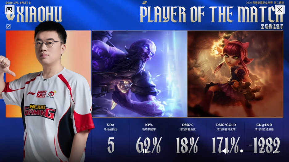 26LPL第二赛段前三周各位置NO1:小天多项数据第一