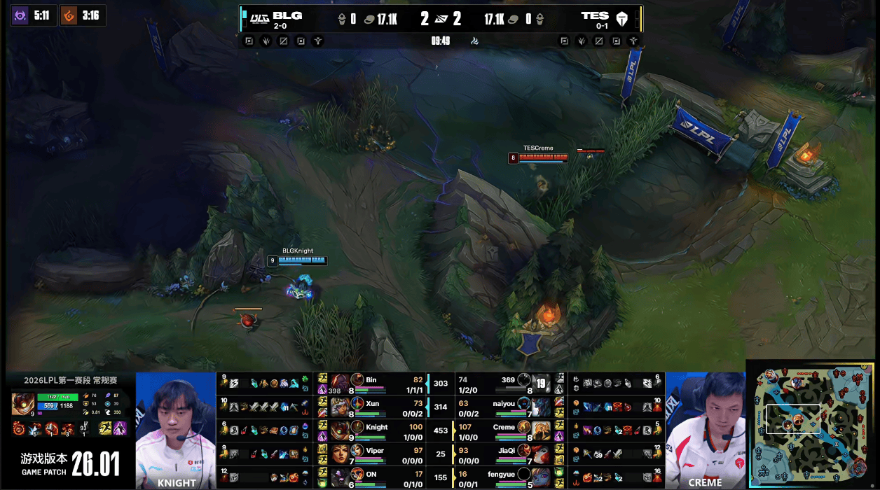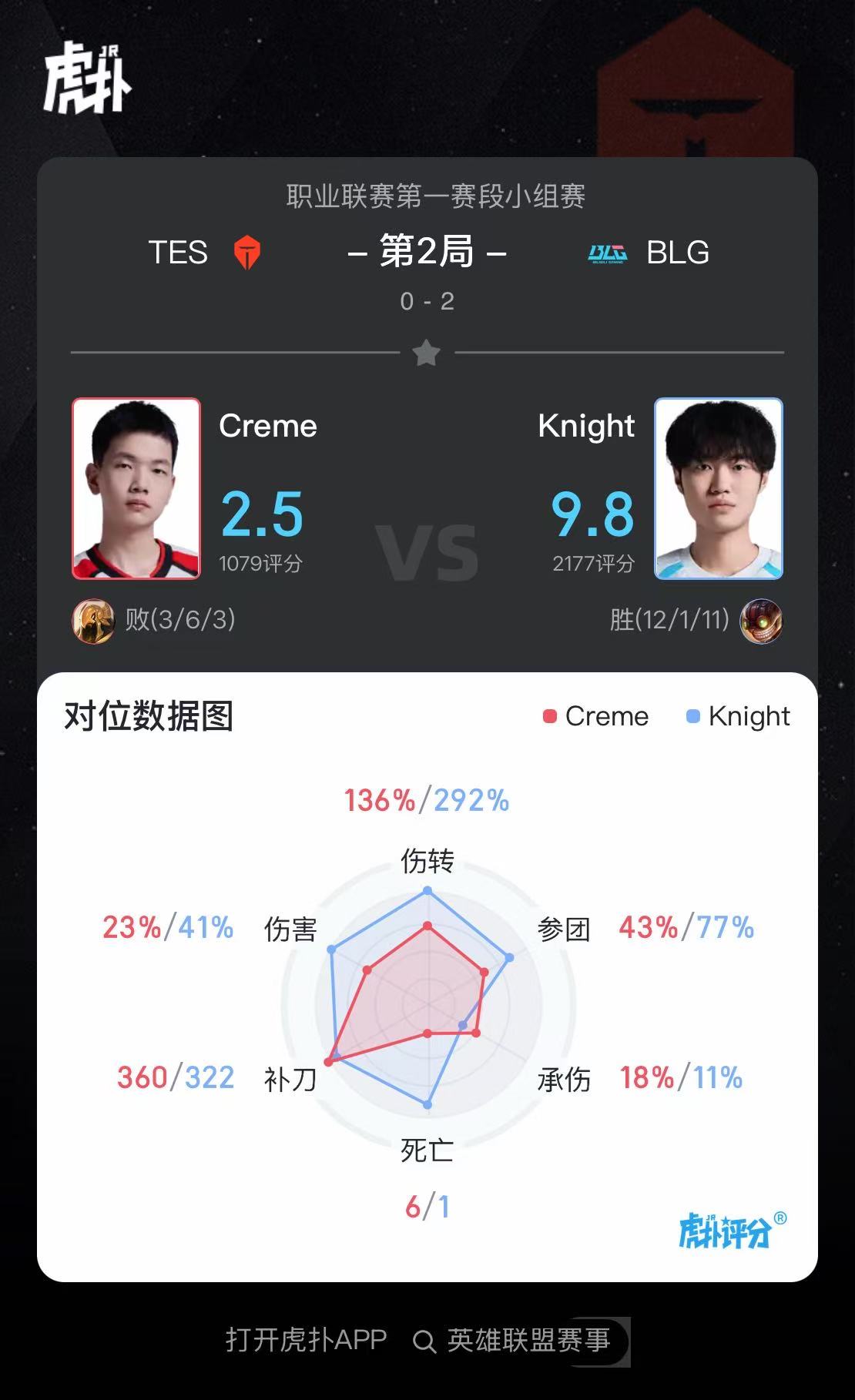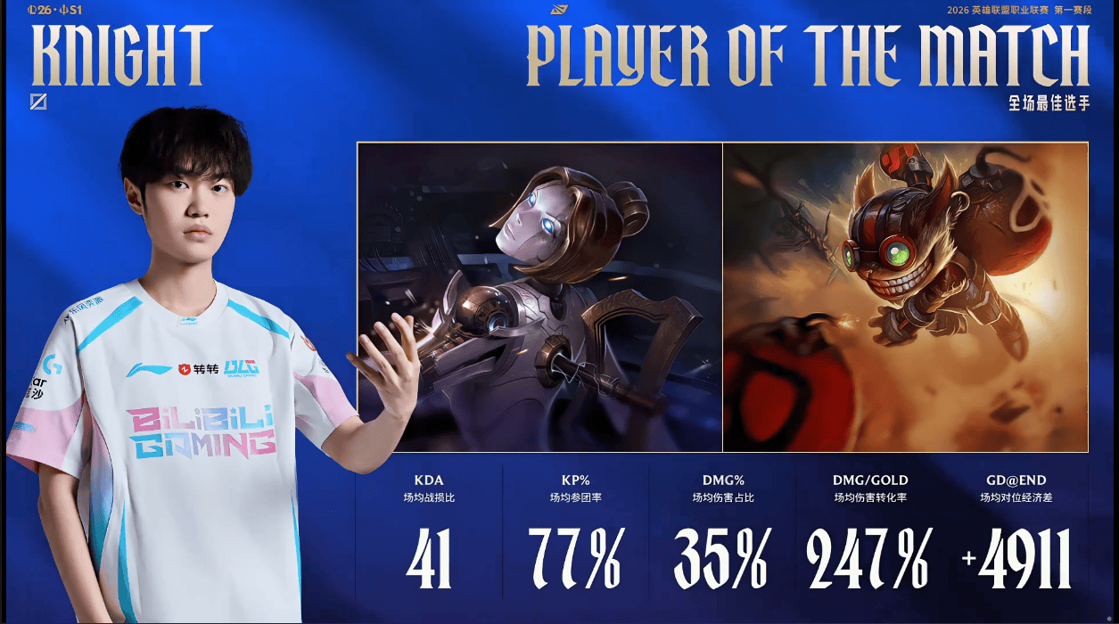 Knight两局比赛砍下41KDA,斩获BLG对阵TES大场MVP