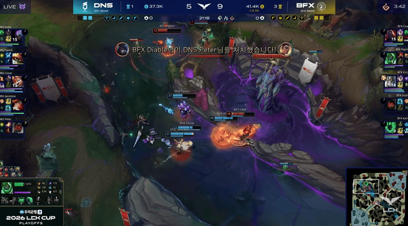 LCK:Diable厄斐琉斯残血反杀Peyz,BFX野区1换4再拿大龙