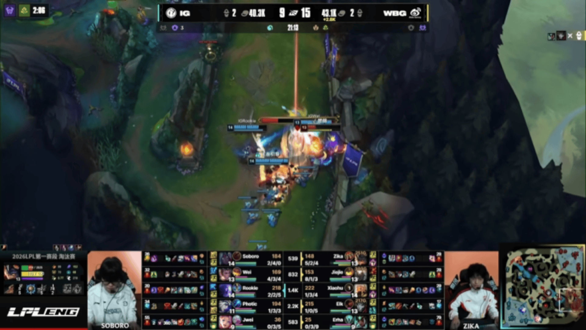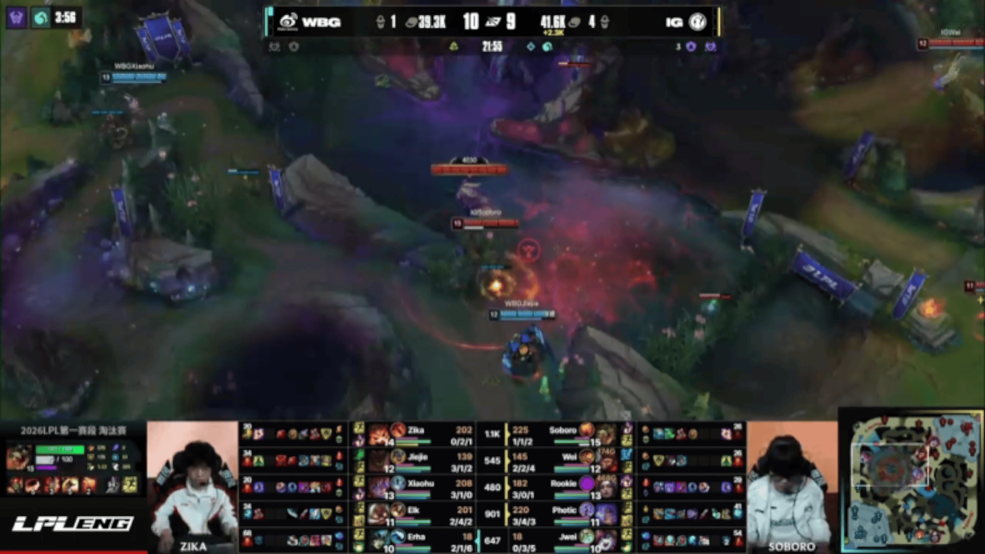 LPL:Soboro韦鲁斯痛失五杀!IG下路团1换5大胜WBG一波翻盘
