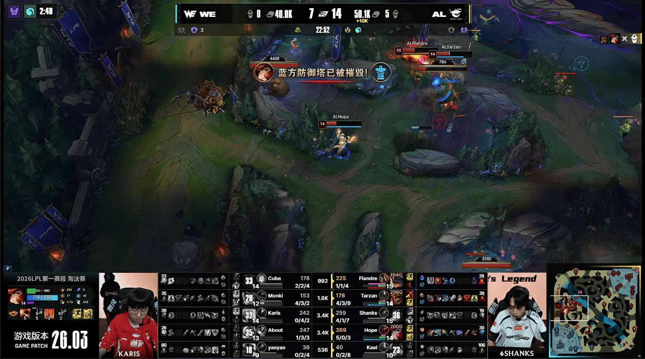 Karis竭尽全力推回Shanks,AL领先过大轻松团灭并拿下大龙