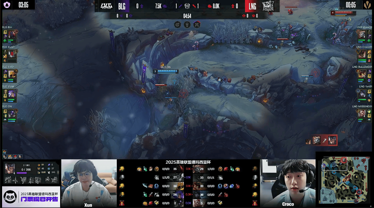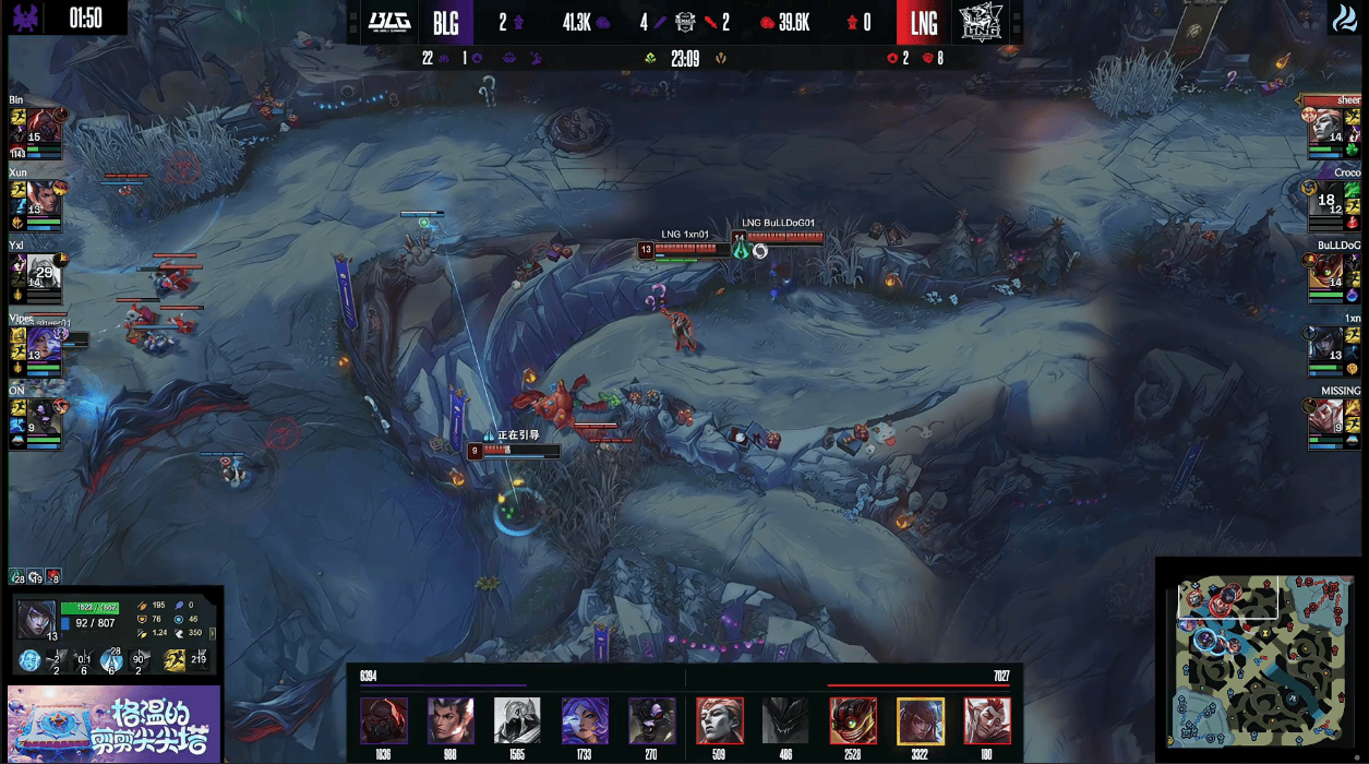 BLG中单与LNG打野进行互换,随后BLG拿下厄塔汗并撤退