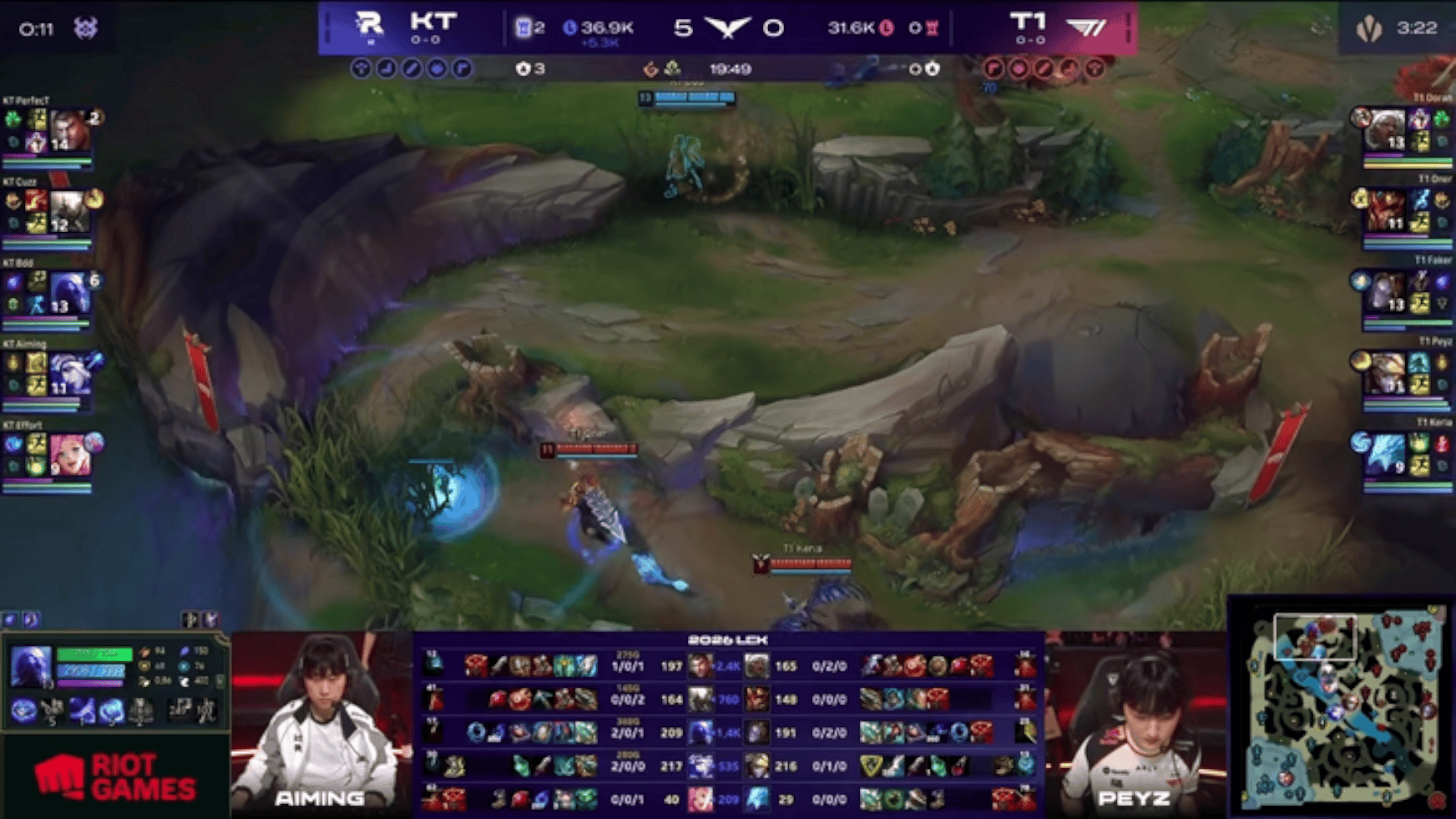 LCK:KT抱团拿到大龙,Ruler复活后赶到战场拿下三杀
