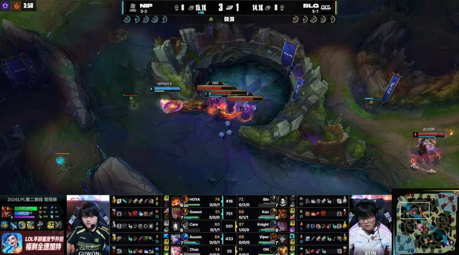 BLG抢河蟹失败后追击过深被JiaQi反打,ON交出一血