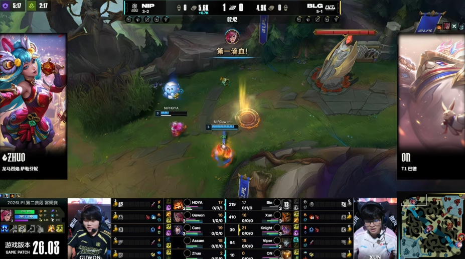 LPL:Guwon蔚率先出击抓上,Bin交出闪现仍送出一血