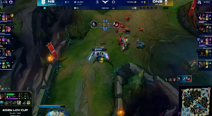 LCK:ShowMaker蛇女河道走位秀打出一换四,开局战绩3-0
