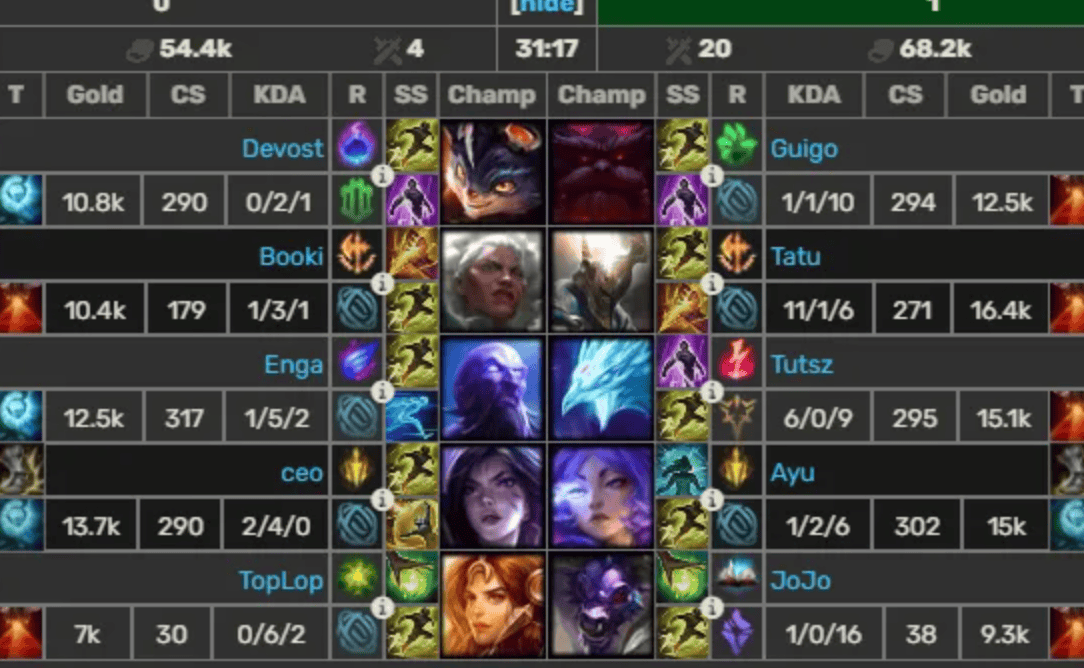 TT 0-1 LNG,本场选手表现你打几分?