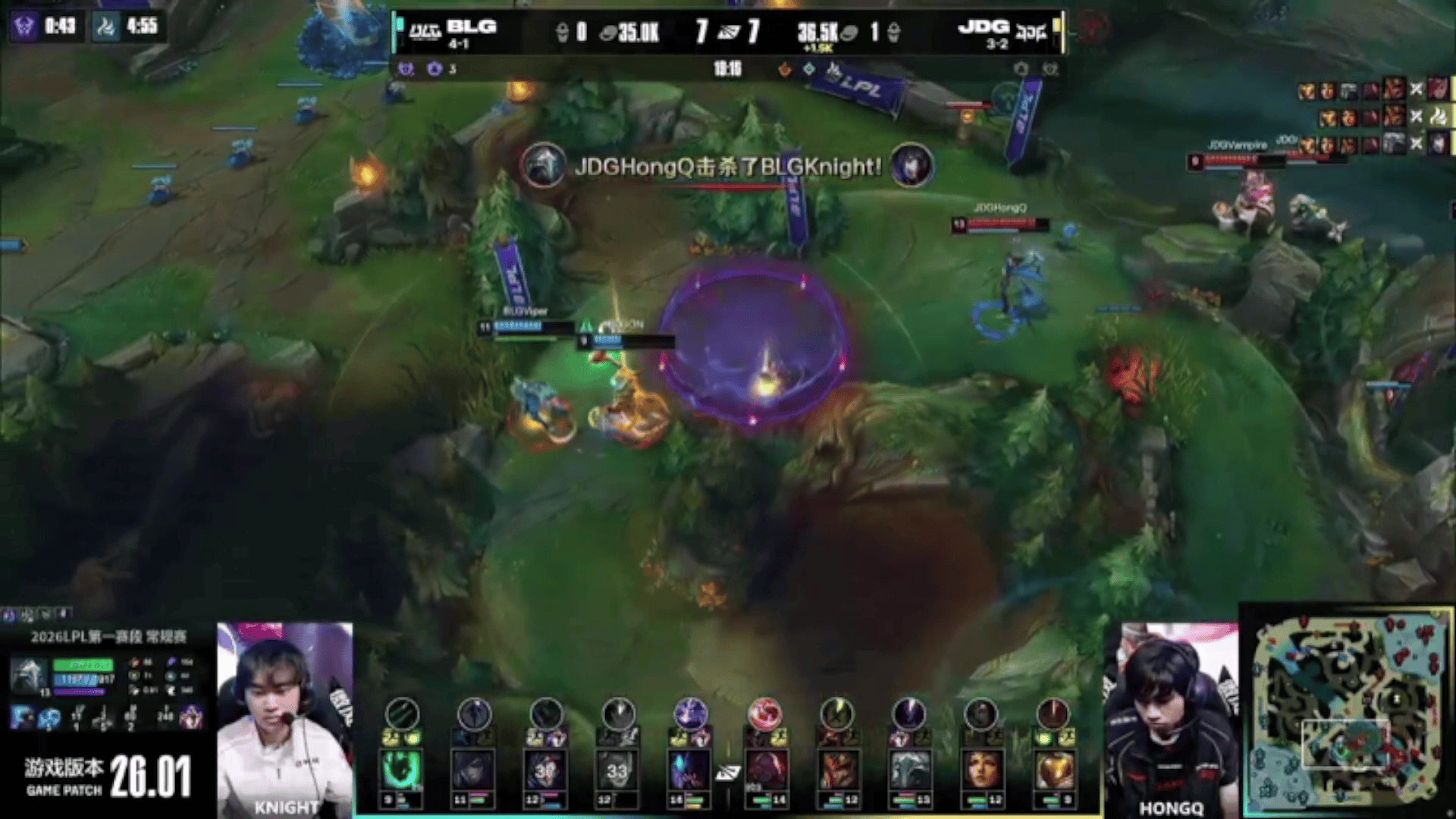 HongQ被勾JDG团战溃败,BLG追击塔下拉扯2换4