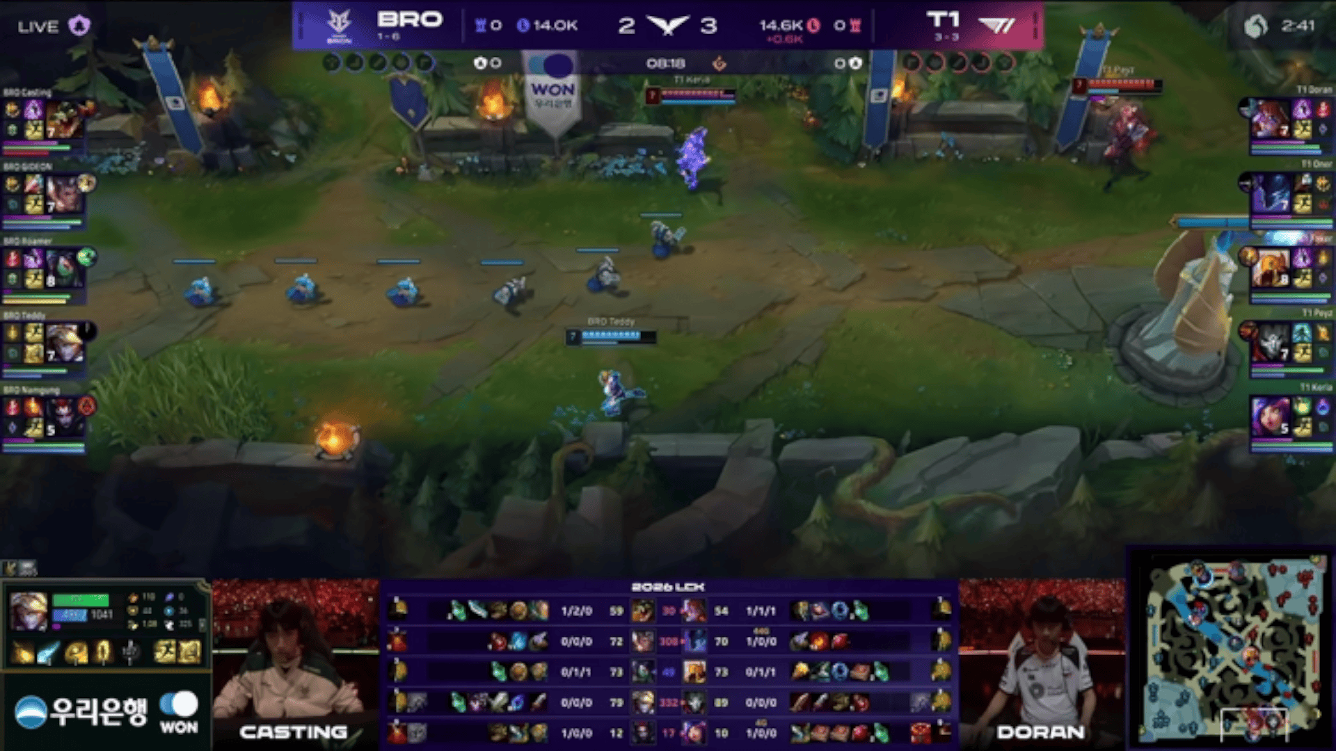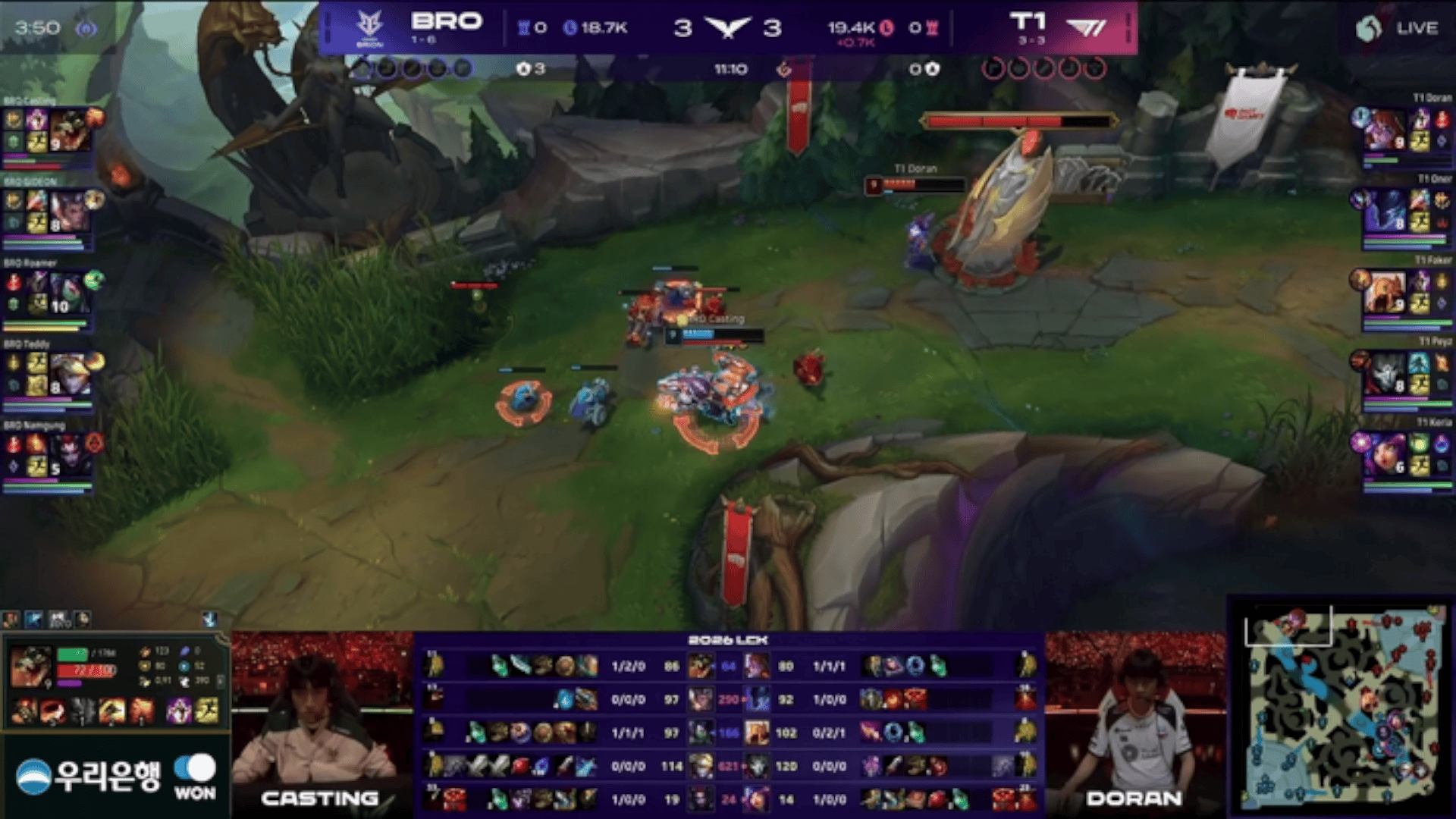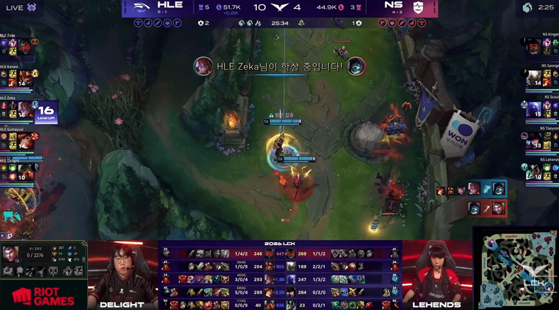 LCK:HLE强追辅助被反打,GEN河道团1换3打退HLE
