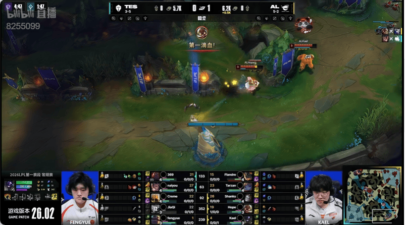 Kael牛头顶起JiaQi寒冰,Hope跟上输出拿到一血