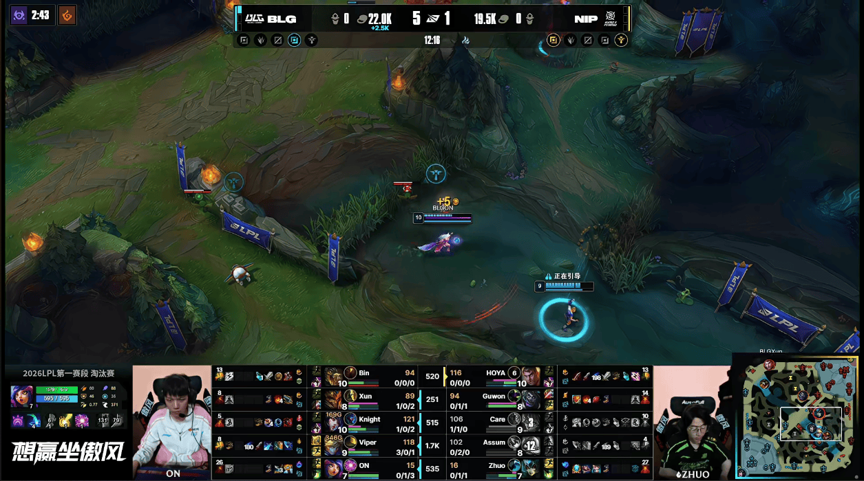 BLG利用人数优势轻松打赢团战,Xun皇子EQ闪完美击飞两人