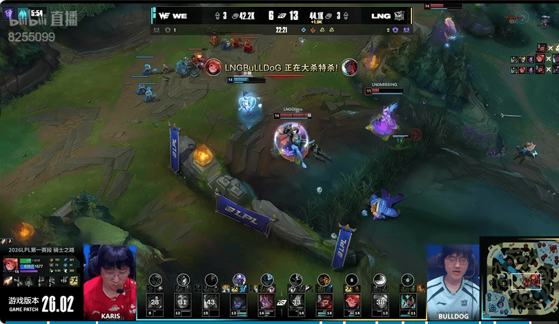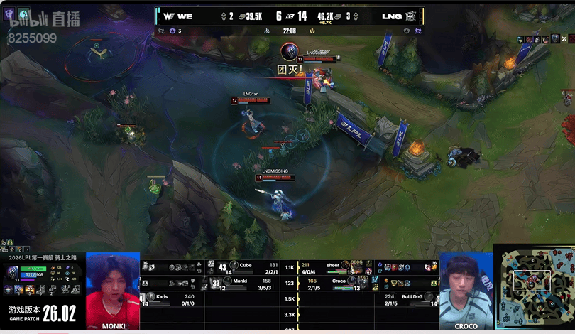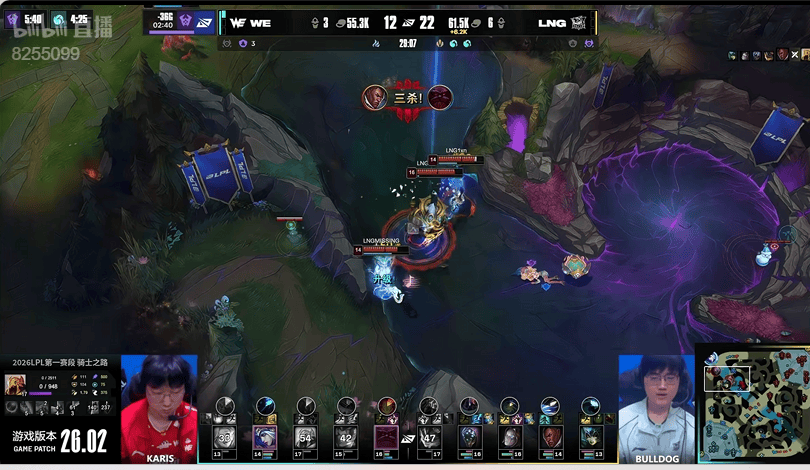 WE先手开团集火发条但是无人处理卢锡安,LNG打出一换五拿下大龙