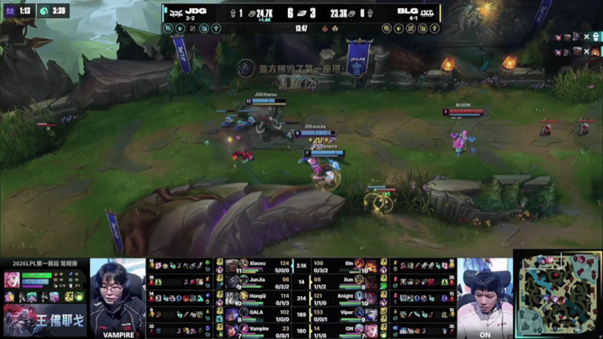 JDG vs BLG首局集锦:BLG领先七千一波被翻,JDG逆转取胜