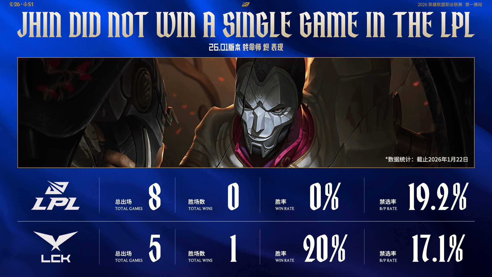 26.01版本烬&亚恒数据:LPL烬0胜8负,亚恒胜率仅33%