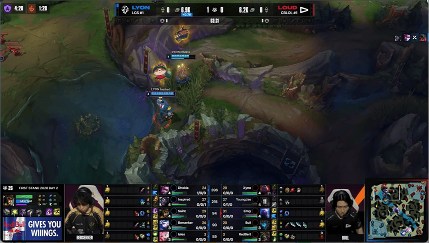 LYON 2-2 LOUD:黄色闪光强破敌阵,LOUD团战阵容扳平比分