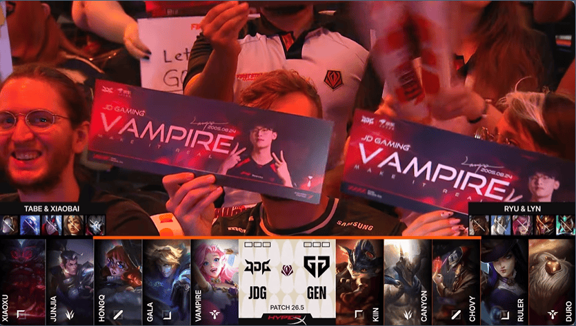 GEN对阵JDG首局BP:Chovy祭出卡牌对阵HongQ兔子