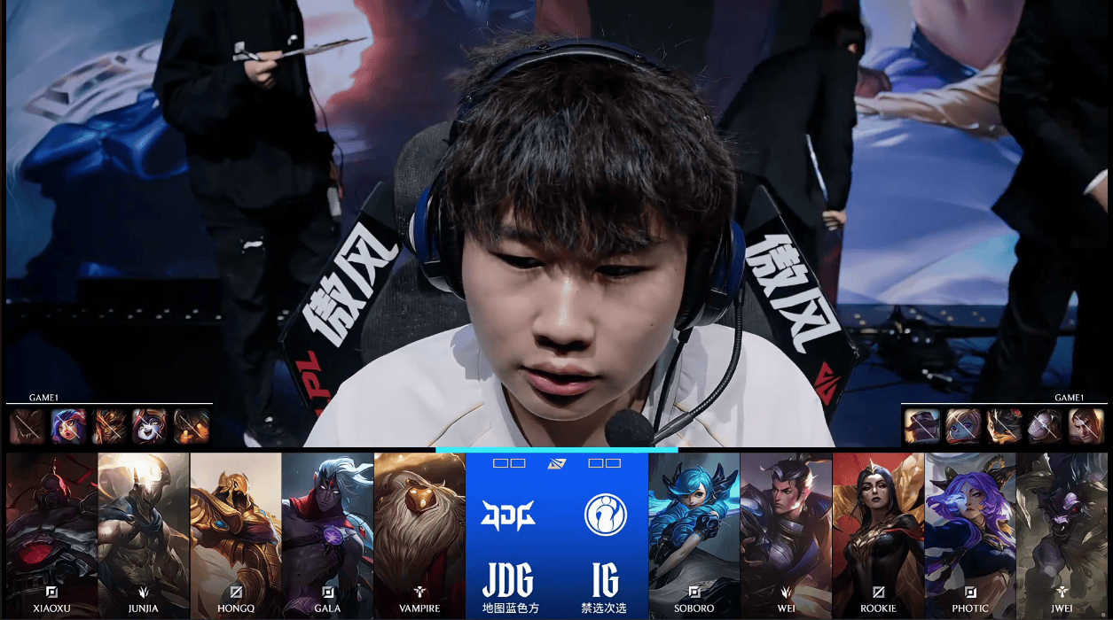 JDG对阵IG决胜局BP:Rookie先手选出佐伊,HongQ后手选卡牌