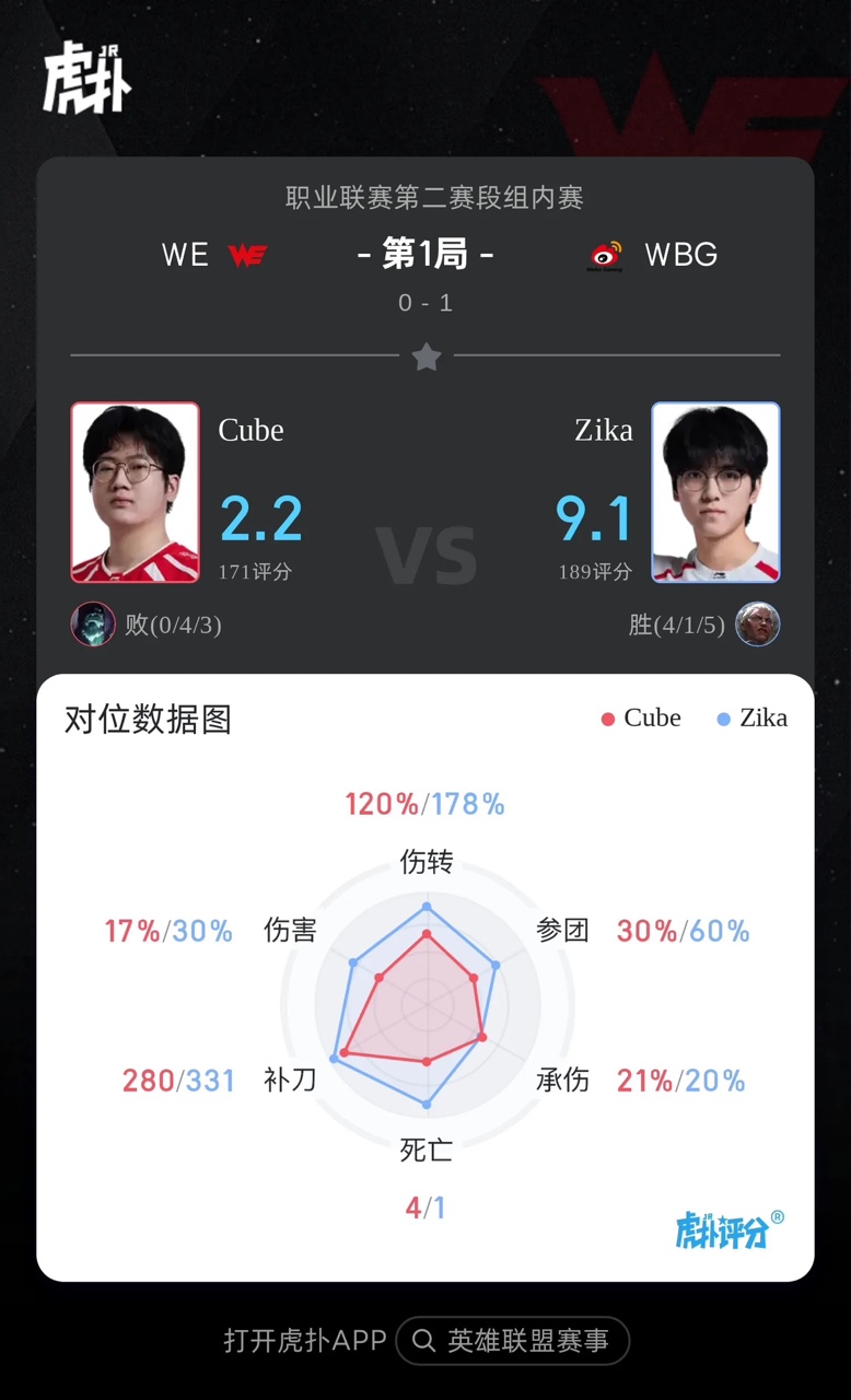 Zika狼母打出4/1/5战绩,斩获WBG对阵WE首局MVP