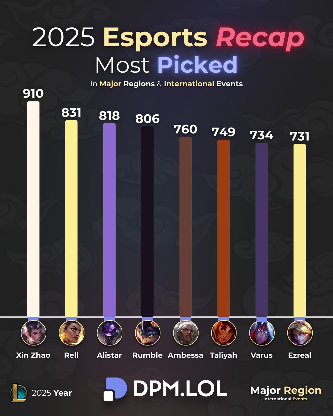 外媒统计2025赛季英雄登场次数:赵信出场最多