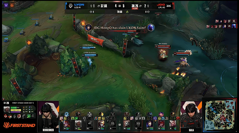 LOL官推分享JDG对战LYON第一局:这两张截图只隔了三分钟