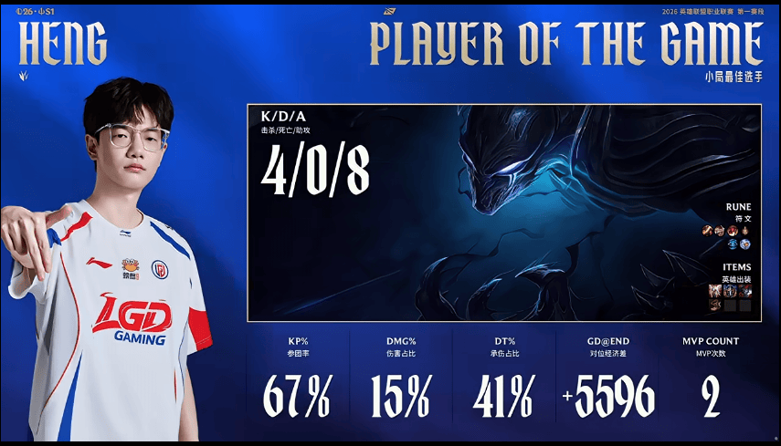 Heng使用梦魇打出4/0/8战绩,斩获LGD对阵OMG第二局MVP