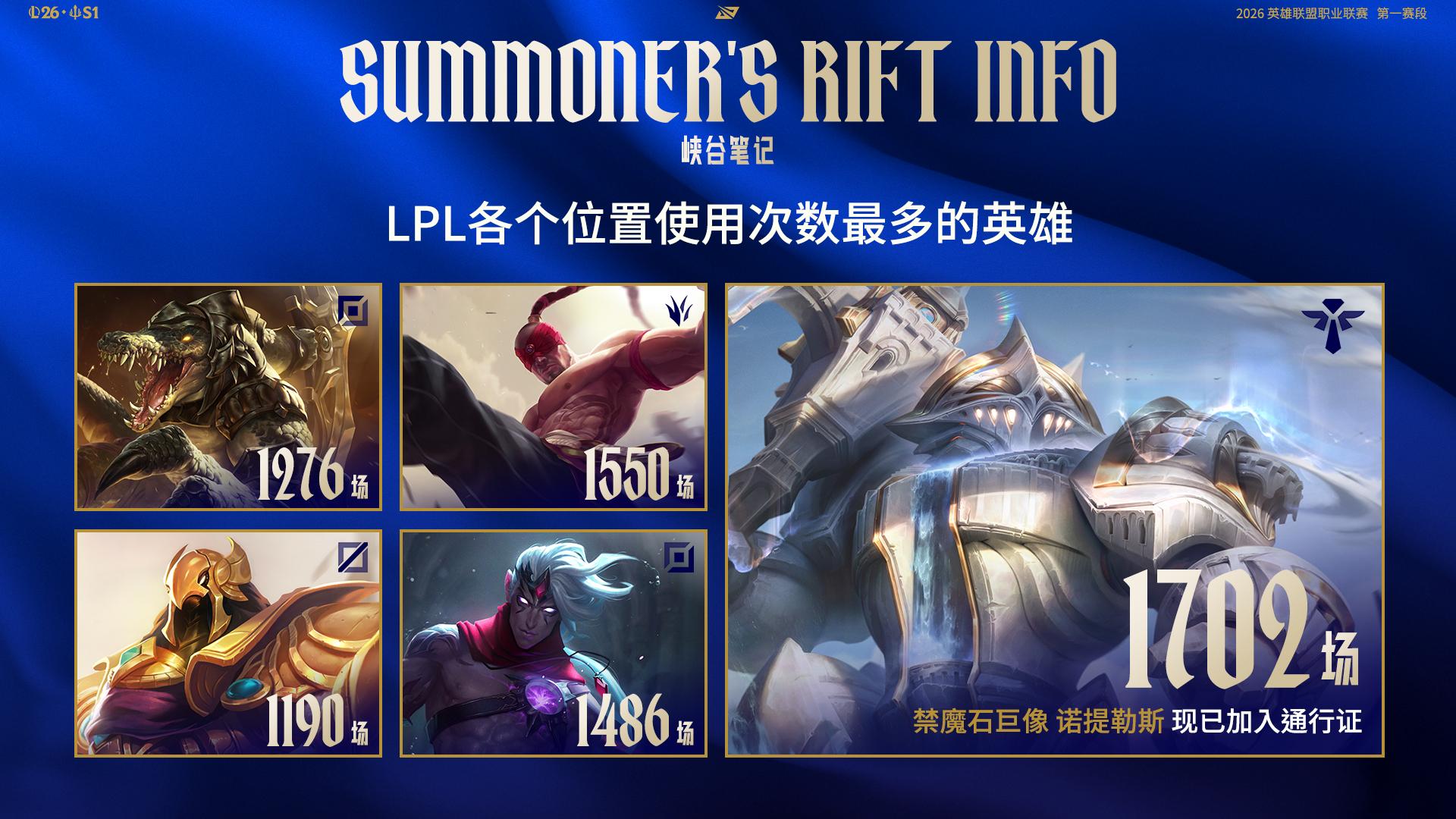 LPL各个位置使用次数最多的英雄:打野李青、下路韦鲁斯