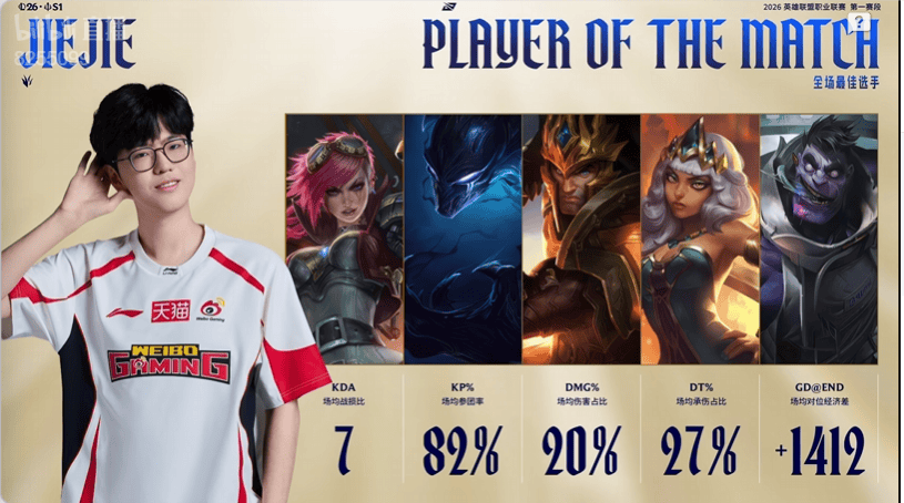 大鹏一日同风起!Junjia发挥出色拿到JDG对阵WBG比赛大场MVP