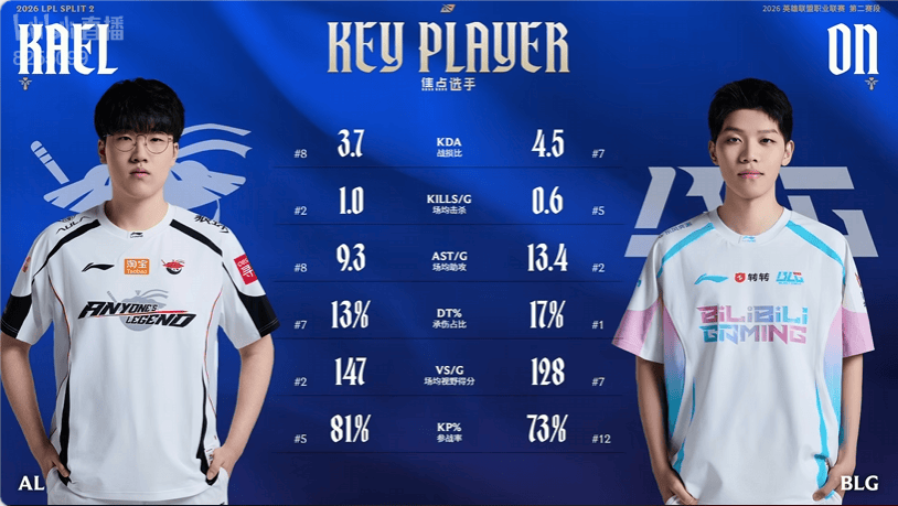 LPL发布BLG对阵IG赛前中单数据对比,Knight全面占优