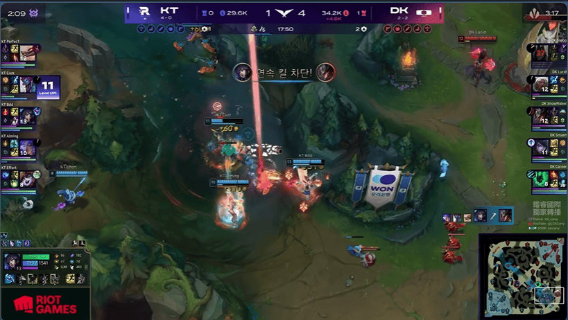 T1上野纠缠河蟹被Siwoo奎桑提大招命中,Doran杰斯交出人头