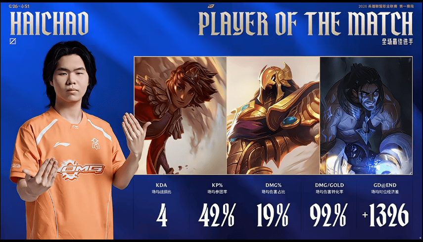 Haichao整个系列赛发挥优异,斩获OMG对阵LGD系列赛POM