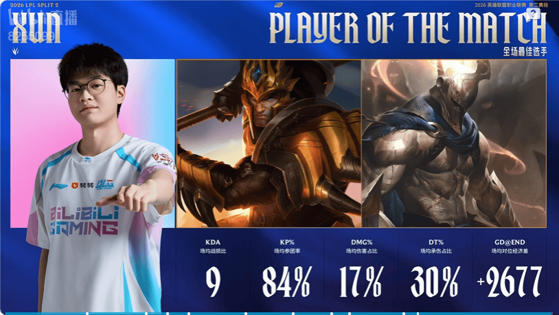 状态拉满!Knight在BLG对阵IG的系列赛发挥出色拿到大场POM