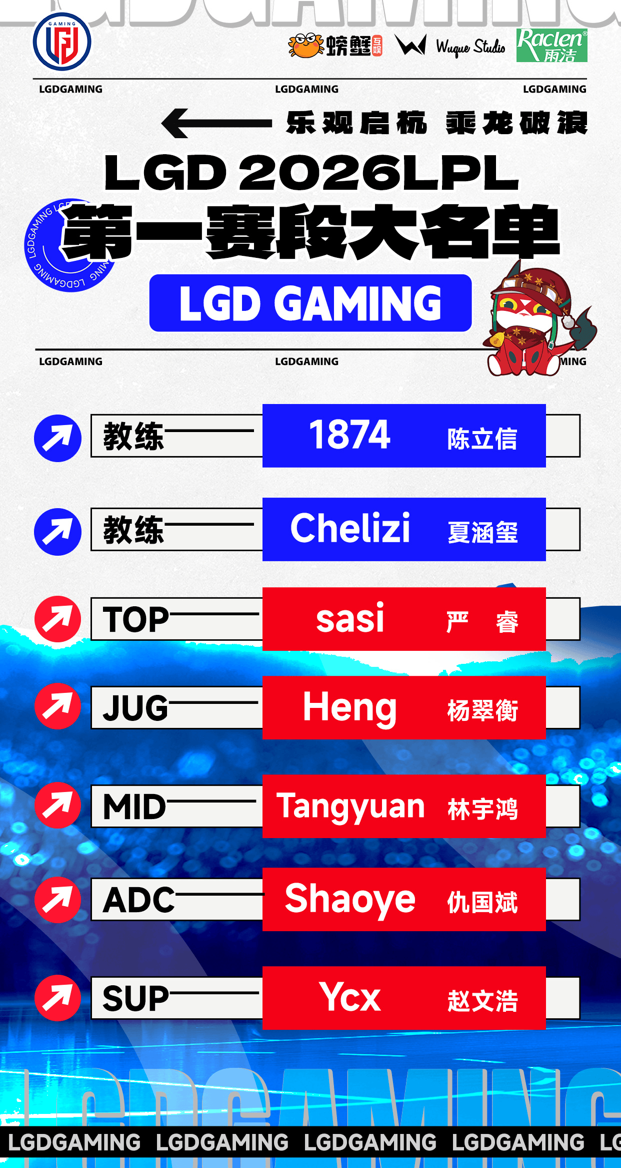LGD公布新赛季大名单:sasi/Heng/Tangyuan/Shaoye/Ycx