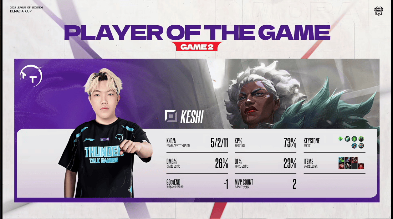 Keshi使用狼母打出5/2/11战绩,斩获TT对阵ZSM第二局MVP
