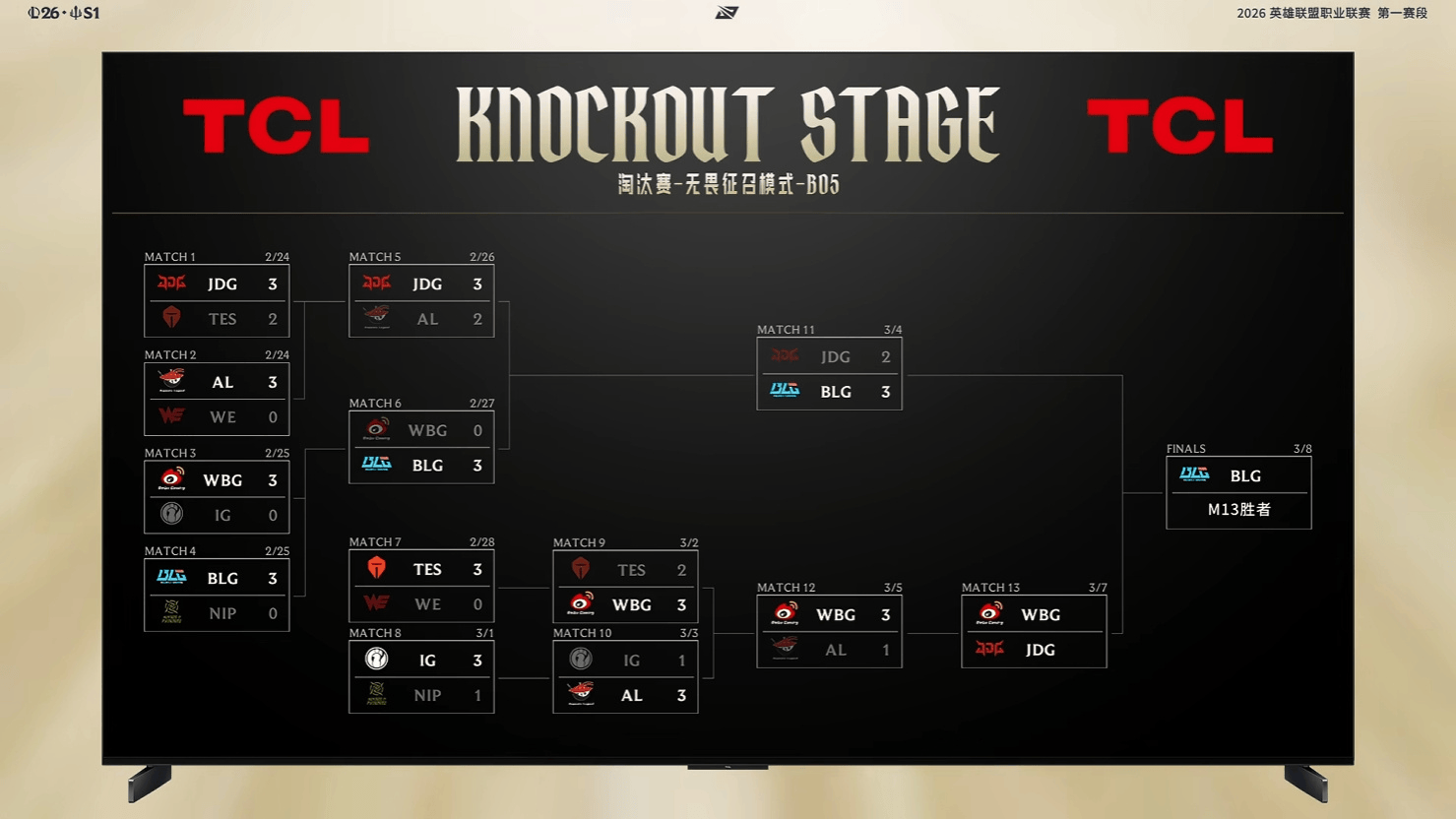 2026LPL第一赛段败者组决赛虎扑墙:WBG vs JDG(BO5)
