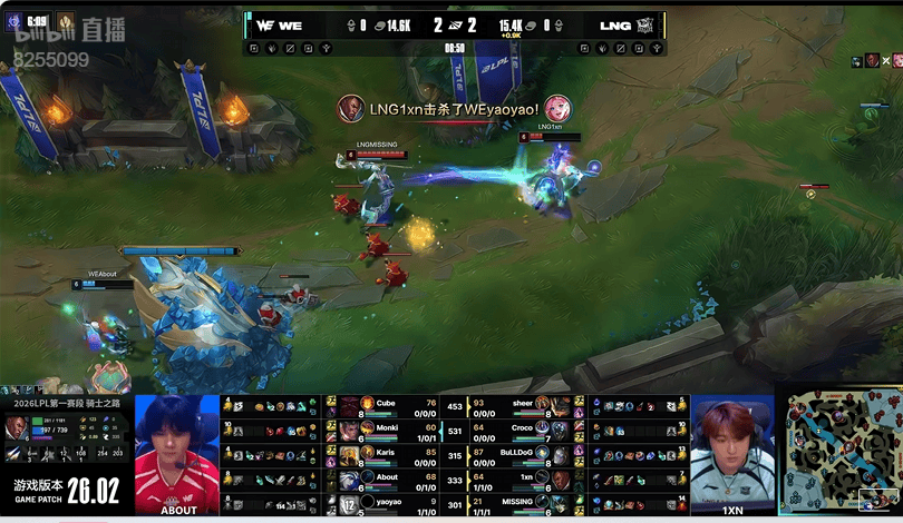 WE首局集锦:中野发力带队取胜,WE击败LNG拿下首局