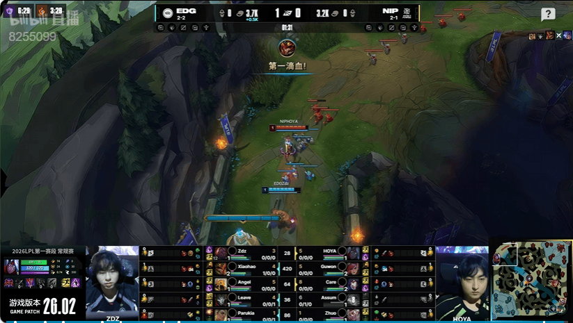 EDG传统二级抓下,Xiaohao击杀Assum拿到一血