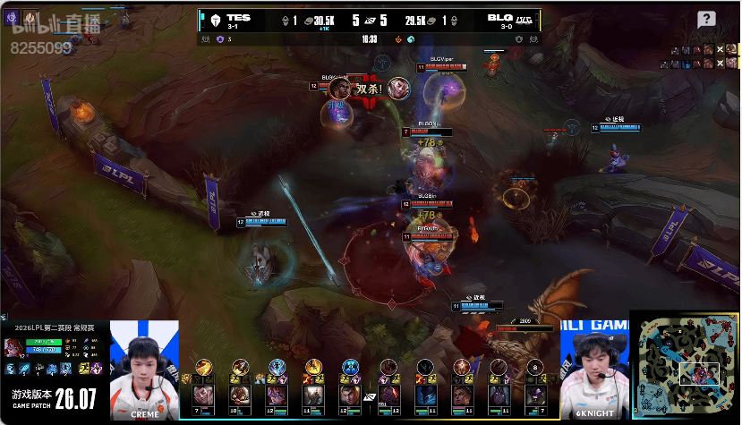 Tarzan梦魇开大直冲安妮被集火击杀,BLG拉扯对手打出一换三