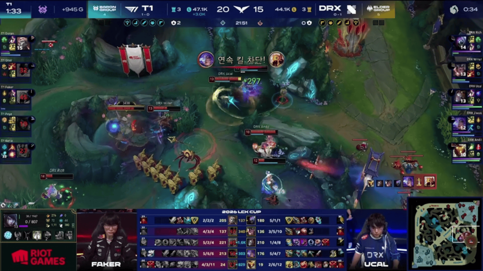 LCK:Peyz厄斐琉斯被抓,T1强行接战被DRX一波打出0换5
